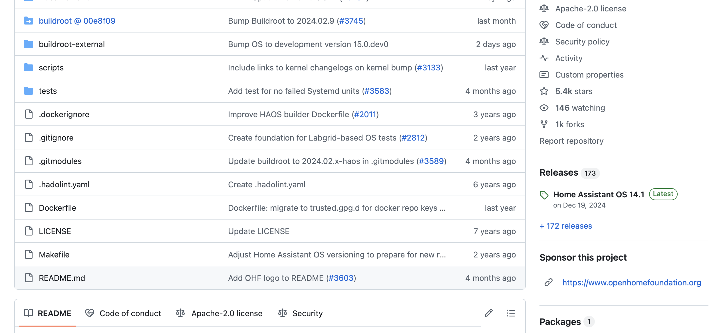 인터넷 브라우저(아마도 기본 브라우저인 Firefox)를 켜고 Home Assistant Github 페이지(https://github.com/home-assistant)로 이동하고, 살짝 스크롤하여 operating system을 찾는다.
